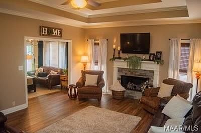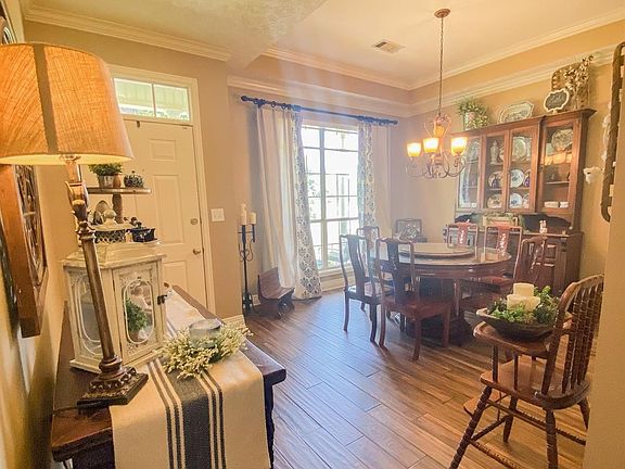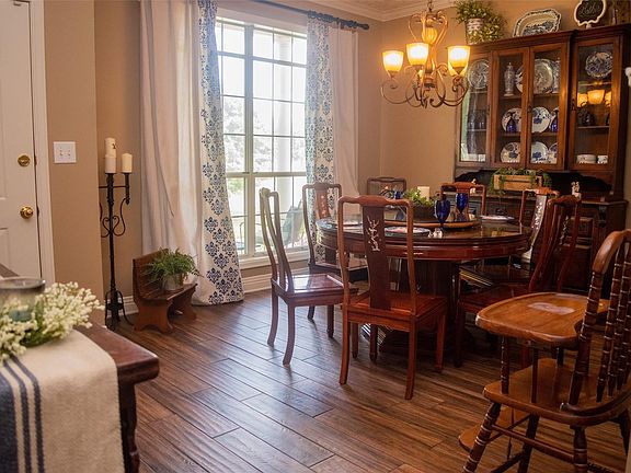 This home has stately southern charm with a covered front porch and a little farmhouse character! With 4 bedrooms and 2 and a half baths, the attention to detail will WOW you when you walk in! The foyer opens up into the dining room with a box ceiling and space for big family gatherings! Beyond the dining room is the extra large family room with double box ceiling, wood floors, gas log fireplace with beautiful custom tile and mantle. The newly updated kitchen has granite countertops, new stainless appliances, a breakfast bar, pantry, a pot hanger and tin backsplash! There is the ever popular gathering room adjacent to the kitchen with the exit to the spacious deck outside, nestled amongst the trees, for outdoor entertaining! The huge master bedroom has a vaulted ceiling and double doors to the en suite with double vanity, jetted garden tub and separate shower! A guest bedroom has nickle joint on the ceiling, another bedroom, currently used as an office, has nickle joint on one wall and wall sconces! Another guest room has a custom display shelf over the closet. The guest bath has lots of cabinets for storage! The 2 car garage has storage as well! This delightful home has been updated and well maintained. Call to see it today!