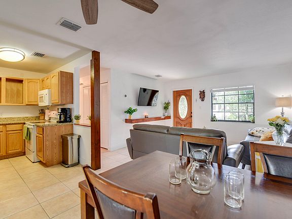 Recently updated concrete block 2 bedroom 1 bath home with large primary bedroom with dressing area, centrally located in Midtown nearby boat ramps. Spacious rear yard with plenty of room for a pool and in law suite too. Fully fenced lot. Off street parking, metal roof, accordion shutters, impact doors and windows, updated plumbing. The unfinished air-conditioned space (165 sqft) could easily be your large primary ensuite overlooking the back yard.