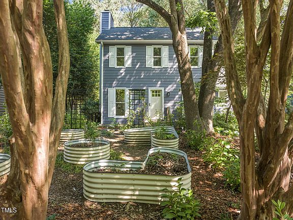 A home run on Valley Run. Oodles of updates, a flexible floor plan, and a private, beautifully landscaped lot are yours in this sweet SW Durham charmer. The grounds will delight, with tiered gardens and raised planting beds at front, replete with Irises, chrysanthemum, coneflower, hydrangeas, lenten rose, and more! The backyard boasts new and pretty white fencing along the front with interior bench seating, and a vast area for play or gardening, backing to serene woods. One of the largest lots in the neighborhood, it's .28 acres of lush and landscaped bliss. Inside, you'll relish the updated kitchen and baths, including newer stainless appliances (2021) alongside wood cabs & subway backsplash. The flexible floor plan boasts two bedrooms plus living and family rooms—the latter of which could be converted to main floor bedroom. You'll love the hardwood, bamboo and slate tile flooring — no carpet here! Plus, enjoy two fireplaces, abundant storage, and fantastic natural light. Newly painted, the interior is warm and welcoming. Want more? The heavy lifting has been done, with new roof & gutters, water heater, and washer & dryer all 2021, exterior paint 2022, and new HVAC 2019. Great schools, shops and major connectors are just moments away. A special home!
