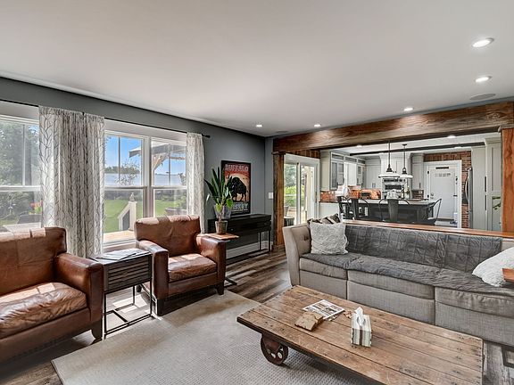 Stunning custom colonial on 1.68 acres in scenic rural setting. Professionally remodeled from top to bottom with innovative and on-trend designs, elegantly appointed finishes, and lovely upgrades. In addition to the 3-car garage there's an expansive finished, climate-controlled outbuilding with office, workshop, greenhouse/nursery, truck bay, and room to store your equipment. Located in unincorporated McHenry with potential for more expansion. Main house features a gourmet kitchen with high-end appliances, new custom island, counters and cabinets, opens to family room with cozy fireplace. Formal living room and dining room. Four generous bedrooms, including a primary suite with walk-in closet and private ensuite luxury bathroom. Finished full basement. New windows throughout, new garage doors and openers, new furnace and AC, new flooring on main floor, new 2nd floor bathroom, huge newly resurfaced cedar deck, new fireplace surround, new front door, new blown-insulation in attic (R-42). Huge (1620 sq ft) climate-controled outbuilding with 10.6 ft ceilings, boasts HVAC, 2x6 walls, R-42 attic insulation, and 200 AMP service on a seperate meter. Country living but with easy access to local restaurants, shopping, major commuter ways, and award-winning schools! Just minutes to the Metra. And there's more (too much to list)! Don't miss this one. It's coming in hot and selling fast!