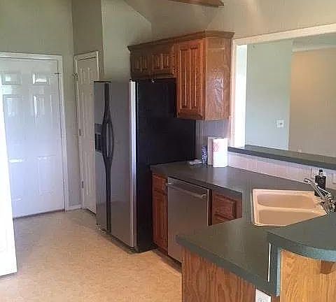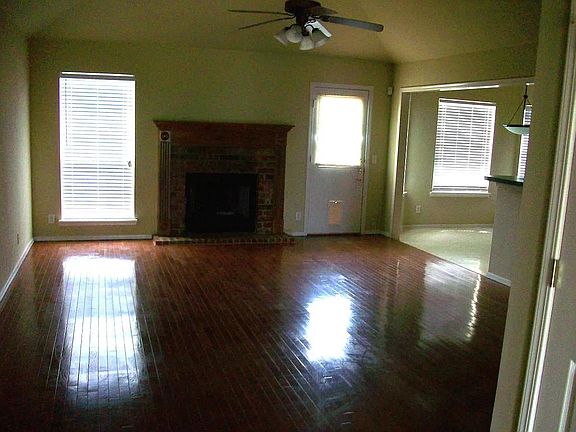Family Friendly, Windsor Oaks Super Cutie 1605 West Miami, Broken Arrow is a 1,600sf single-family open-plan home, fenced lot, 3 bed 2 bath, covered front porch, washer/dryer, refrigerator, central heat and air, gas log fireplace, ceiling fans, vaulted ceilings in living and master, wood floors in main living, tile in bathrooms, dining, kitchen, new paint inside and out, new gutters, new tile/counters in kitchen. Super Clean. Backs up to green belt. Doggie Door-OK for small Pet. No smoking. Tenant responsible for all utilities and lawn care