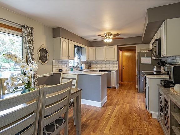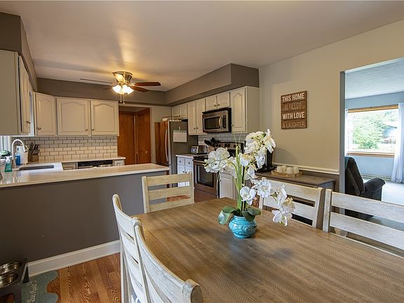 What you all have been waiting for is finally here! This three-bedroom one and a-half-bath bath ranch that sits on nearly an acre is ready for your buyers to move in! The kitchen was recently updated in 2021 with painted cabinets, new quartz countertops, and backsplash. The family room features a gas fireplace and all three bedrooms are conveniently located on the main level with a full bathroom. There is also a nice half bath to use for guests located just off the kitchen. When you walk through the breezeway to the garage you will find access to the large partially finished basement with extra entertaining space and a wood-burning fireplace. The house has city water and sewer but also has a well on the property that still works to the seller's knowledge but has not been used. All kitchen appliances will remain and are 7 years old. The roof was done in 2014, A/C and Furnace were new in 2019, as well as a new wireless garage door in 2019. Both fireplaces have never been used by the sellers. The swing set and storage shed will convey with the property. There is also an electric dog fence that will remain with the property. Items that do NOT convey include washer, dryer, pool table, refrigerator in the basement, and curtains. The sellers will need possession until 11/20.