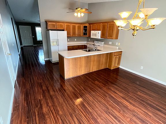 Beautiful 2 bedroom, 2 bath duplex located in quiet Thornhill Subdivision on the west side of Springfield. You walk into an open living room that flows seamlessly into the kitchen due to the open concept and updated faux wood floors throughout. Approximately 1,492 square feet which includes: upgraded laminate wood floors in kitchen and living room. Tiled bathrooms, appliances included, vaulted ceilings, gas fireplace, washer / dryer and attached two car attached garage. Huge master bedroom with large walk-in closet, and on-suite bathroom. Dog and cat friendly for an additional pet rent & deposit. Renter oversees all utilities as well as maintaining the yard (lawn mower provided). Max of 4 occupants. Leases of 12 months are preferred but shorter lengths are available for upgraded charge. Showings available with appointment. Move in date is any time after March 2nd. 12 month lease. Move in date is any time after March 2nd.