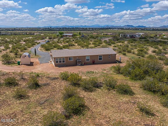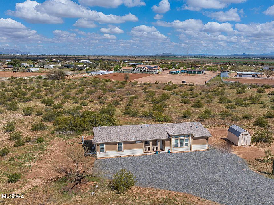 No HOA! Meticulously maintained and move-in ready 2020 home on over 4 acres of property! This house boasts of a large open kitchen with plenty of cabinets, stainless steel appliances, large island with seating & natural lighting. Vaulted ceiling, ceiling fans, large laundry room and an open office space with a built-in desk. House is equipped with Southern AZ Rain Gutters. Extra Large Shed and a paved packed gravel driveway. Plenty of RV space. There is much more to see, don't miss out!