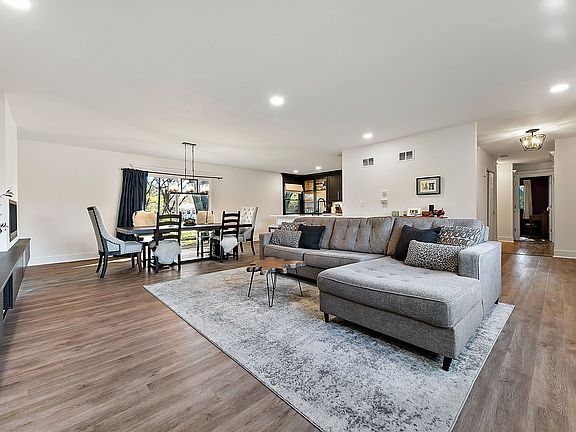 Amazing updated modern ranch with open floor plan after walls were removed. Fabulous gourmet kitchen with complete remodel. New dark cabinets to ceiling with pull out soft close drawers with large gold pulls. Modern quartz counters and backsplash. New stainless steel appliances, farm sink, garbage disposal and wine refrigerator. New luxury vinyl flooring in kitchen and family room. New built in modern gas fireplace, floating shelves and built in entertainment center. 3 bedrooms with original hardwood floors. Master Bedroom with entire closet wall with pull out drawers. 2 modern full baths completely renovated with modern flooring, white cabinets, glass shower doors and tile surround, modern bowl sink, updating lighting and mirrors. Newer roof and gutters. New doors through out including back door. New molding and trimwork. Newer Siding and windows! 2 large sheds (one with newer roof) for extra storage. The backyard is stunning and relaxing with beautiful Oak trees. Newer furnace and AC 2018. New whole house water treatment system with carbon filter. Great location close to everything but "out of the way" to feel like you are in the country! 4 foot crawl entire length of home. Huge concrete driveway for tons of parking. Don't miss this beautiful ranch home.