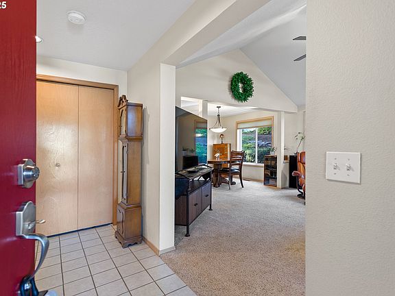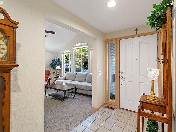 Beautifully maintained 2-bedroom, 2-bath home in the sought-after Highlands 55+ community. The light-filled, open-concept living area features vaulted ceilings, a brick fireplace, and a pellet stove—ideal for cozy gatherings. A slider leads to a covered patio and a private, beautifully landscaped backyard. Recent updates include a 2-year-old A/C, 9-year-old roof, 4-year-old hot water heater, and new refrigerator, dishwasher, and microwave. Just steps from the lively clubhouse and minutes from shopping, dining, and golfing, this home combines comfort, convenience, and style!