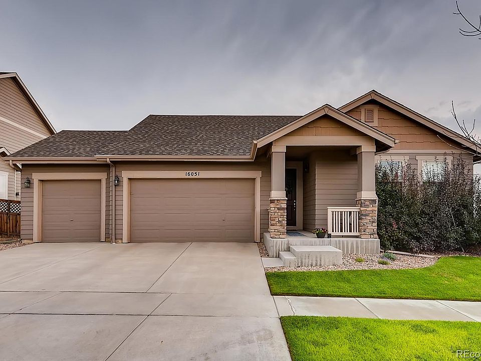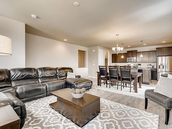 This gorgeous ranch plan in Outlook features 5 beds (3 main / 2 basement), 3 baths, living room, kitchen, finished basement and 3 car garage. Beautiful upgrades and finishes throughout. Meticulously maintained - pride of ownership shines throughout. The finished basement (with permits) features a family room, 2 conforming bedrooms and bath - perfect for guests or that teen wanting their own space. Enjoy relaxing and taking in the open space views from the elevated deck or patio. The backyard xeriscaping makes for easy maintenance - just lock up and go! Perfect and move in ready. So many special touches such as the plantation shutters, slab granite & quartz counters, basement wet bar w/floating shelves, walk-in closets in all bedrooms, drinking water filtration and more. An energy efficient furnace, central air conditioning, ceiling fans and gas fireplace keep this home comfortable all year long. Neutral tones make it easy to picture yourself calling this one home. This home lives large. The many windows allow the natural sunlight to cascade in - bright and cheerful. Close to dining, shopping, entertainment and other amenities. Don't miss your opportunity - Welcome Home!