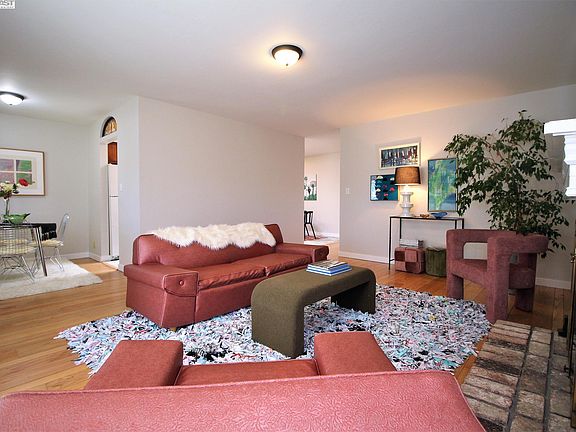 Move in ready best describes this tucked away Village Rancher. This three bedroom, two bath, two car garage home offers 1621 square feet of spacious living situated on a 5454 square foot lot. Once inside you are greeted by a large living room with a brick wood burning fireplace and adjacent dining area. Perfectly positioned, the kitchen is nestled between the Living Room and step-down Family Room, perfect for entertaining, family dinners etc. Exposed beams and the free-standing wood burning fireplace in the Family Room lend to the cozy feel. Many movie/game nights await you. Other features include a Primary bedroom with wall-to-wall closet and private on-suite, dual pane windows, central heat, new carpet/linoleum, newer roof and main sewer lateral. Walking distance to San Lorenzo Park, Bay Elementary School and the Bay Trail.