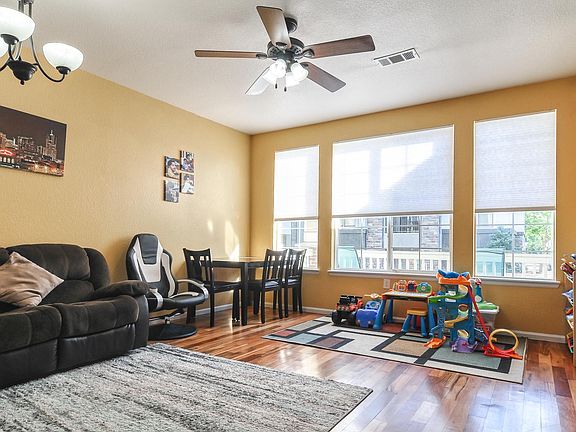 Super clean, newer town home in Cherry Creek School District. Two year old Tigerwood (Brazilian Koa) floors throughout main level, 42 inch cabinets in kitchen, and brand new central A/C. Upstairs boasts two extra large bedrooms, each with it's own bathroom and laundry. Complex backs to Cherry Creek with extensive trail system for walk/run/bike. Community swimming pool and hot tub.