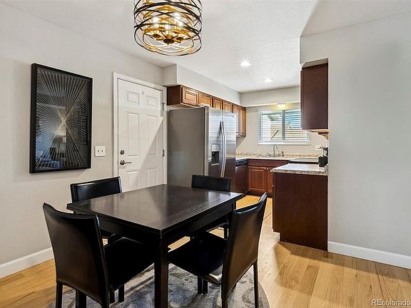 You will fall in love with this nicely updated 2 bedroom 1 bathroom Townhome located in Sunburst situated in a cul-de-sac on a corner lot! Soft paint and natural light creates a warm and inviting atmosphere upon entry. Home features newer hardwood floors, carpet, kitchen cabinets, corian countertops and stainless steel appliances! Washer and Dryer included. Large master bedroom, 2nd bedroom and full bathroom. Dining area off kitchen. Private fenced in patio. Adjacent to open space, close to shopping, dining and more! Cherry Creek Schools. This property won't last. Schedule your showing today!