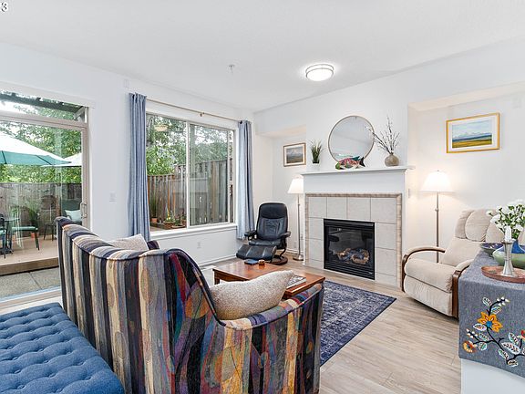 Beautifully maintained townhome in Bethany! Covered porch invites you into the entry hall leading to the open concept living, dining, and kitchen. Tall ceilings allowing lots of great light from big windows & glass sliding door. Gas heated fireplace for cozy winter evenings. Kitchen updated with cabinet pull-out drawers and great storage. Newer SS all electric appliances. Guest 1/2 bath on main. Tranquil & private backyard nicely shaded for cool Summer gatherings on the deck. Upstairs features primary en-suite with walk-in closet. Bathroom updated with large walk-in shower. Also upstairs, 2 spare bedrooms and laundry room. Easy ladder access to attic space for great storage. Attached 1 car garage and extra driveway parking with electric car plug-in. Tree lined streets with community maintained landscaping. Enjoy this peaceful community setting while being conveniently located next to Bethany Village and 8 min drive to Tannasbourne Shopping. Easy access to Hwy 26. Take a leisurely walk or bike along the miles of trails connected by Stoller Creek Greenway. Top rated school district. See our virtual tour links for more information.