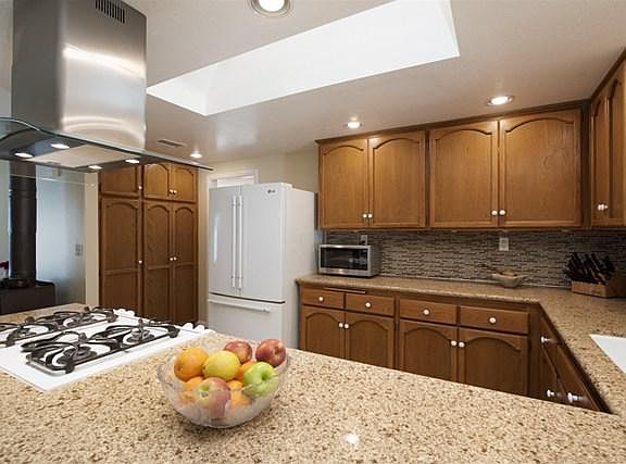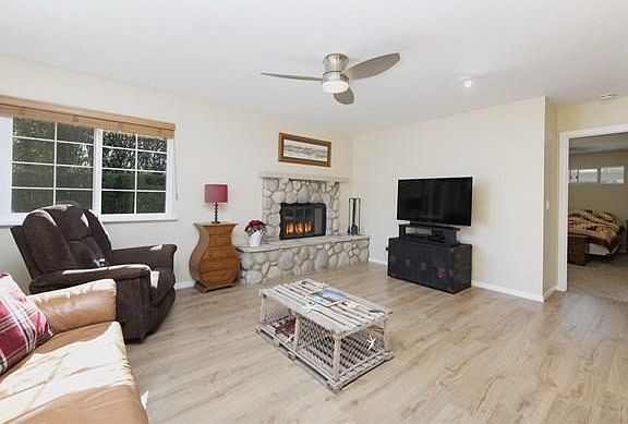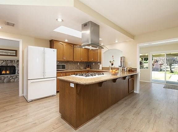 Charming, picturesque home with city and well water for the yard you've always wanted, lush lawns, fruit & palm trees and gardens on appx 1/2 usable acre fenced and cross fenced. Granny flat with kitchenette and separate entrance. Light and bright, skylight and French doors. Beautifully maintained and updated with laminate flooring, quartz counters. Extra room for crafts or office.