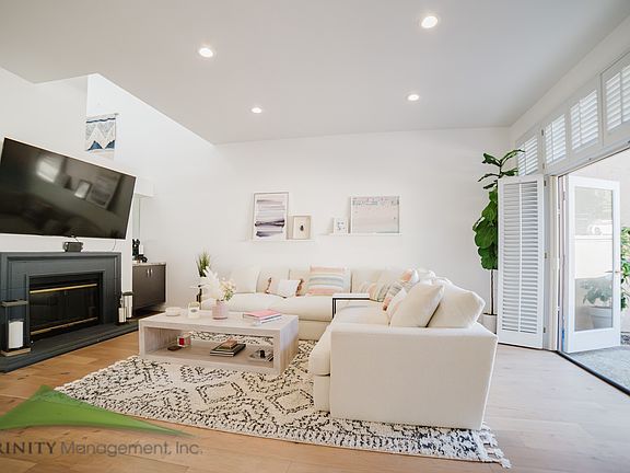 Beautifully updated townhome in the gated community of Alcala in Whispering Palms. This stylish, modern home has wide plank wood flooring in the living areas with access to the low maintenance back patio through the french doors. Gorgeous kitchen with breakfast nook and new appliances and an eat up bar area. The primary bedroom has a cozy fireplace with an en suite bathroom complete with soaking tub and open shower concept. Spacious walk in closet with custom built ins. Two additional bedrooms and full bathroom on the upper floor. 2 car garage. A/C. Washer / Dryer included. Community pool.