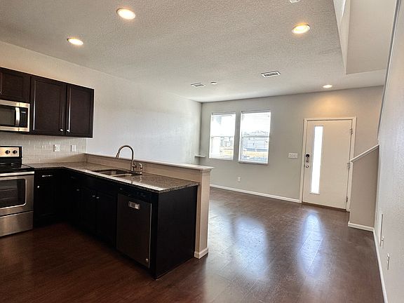 Welcome to this beautiful townhome in the Avion Community, where low-maintenance living meets modern luxury. This contemporary residence features three bedrooms and three bathrooms. Upon entering, you're greeted by high-end LVP flooring that spans the entire main level. The open-concept design allows the living room to flow seamlessly into the kitchen, which features a granite island. Adjacent to the kitchen is a cozy dining area. The home comes equipped with a refrigerator, washer, and dryer. Upstairs, you'll find the private primary suite, thoughtfully set apart from the other bedrooms to ensure maximum privacy. The spacious primary bedroom boasts high ceilings and connects to an en-suite bathroom with a standing shower, linen closet, and an oversized walk-in closet. The upper level also includes two additional bedrooms and a full bathroom. This home is in a prime location just a 5-minute walk to the newly opened Costco and offers quick access to Denver International Airport, top-rated restaurants, bars, and recreational areas. Commuters will appreciate the convenience of nearby access to four major highways. Extra Amenities: Complimentary access to the community HUB, which features an outdoor pool, clubhouse, grilling patio, and yoga room Attached 2-car garage with direct access to both the kitchen and living room Brand new carpet and fresh paint throughout the home Utilities: Rent includes lawn care, snow removal, and trash service Tenant is responsible for all other utilities (gas, electricity, water, sewer, stormwater, and internet) Pet Policy: One pet allowed (dog or cat under 50 lbs) with owner approval Pet fees: $30 monthly pet fee + $300 refundable pet deposit Lease Terms: Minimum lease term of 12 months (24 months preferred) Renter's insurance required No smoking of any kind allowed (including marijuana, vaping, or cigarettes) Showings by Appointment Only Utilities: Rent includes lawn care, snow removal, and trash service Tenant is responsible for all other utilities (gas, electricity, water, sewer, stormwater, and internet) Pet Policy: One pet allowed (dog or cat under 50 lbs) with owner approval Pet fees: $30 monthly pet fee + $300 refundable pet deposit Lease Terms: Minimum lease term of 12 months (24 months preferred) Renter's insurance required No smoking of any kind allowed (including marijuana, vaping, or cigarettes)