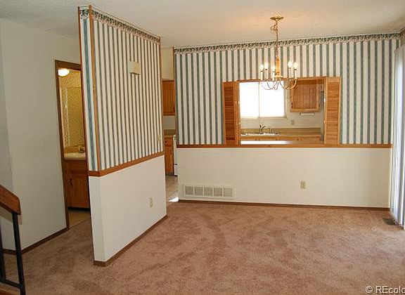 Shows well. Enjoy this light and bright townhome with its interior location. Carpet was just installed. Newer windows provide added insulation. Bedrooms are nice-sized and each floor has a bathroom. Breakfast bar allows you to eat in the kitchen, and a dining room allows room for entertaining. All appliances will stay, including newer washer and dryer. Furnace and air conditioning have been serviced yearly. A small fenced yard gives some nice privacy. This home is convenient to shopping, restaurants, schools, RTD, E470 and I225. The area boasts a neighborhood park, and an added bonus is Cherry Creek Schools. See it today before it disappears!