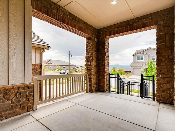 New home! Ready now! Spacious ranch plan with wonderful mountain views from the private front study. Chef's kitchen with double ovens, gas cooktop, upgraded dark maple cabinets with lovely staggered appearance and large center island with quartz countertops. Beautiful wide plank engineered wood floors throughout the living areas with upgraded carpet in the bedrooms. Cozy fireplace in the great room with stacked ledgestone and covered patio with exterior stone fireplace for entertaining and relaxing. Large master suite with wonderful natural light opens to spacious 5 pc master bathroom with lovely tilework. Two secondary rooms share Jack & Jill bath. Full unfin bsmt with rough plumbing and 9' ceilings. Home is adjacent to open space/trail and across the street from the community park. Easy access to Boulder/Denver and the Airport. Energy Star Certified and HERS rated. Thunder Vista elementary and middle school opening August 2018!