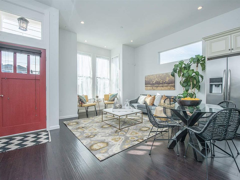 Only min to SF & completely renovated in 2014, this bright + airy condominium home is one of only 3 units in a gorgeous Victorian. This 2nd story flat has 3 beds, 2 baths, including the master en suite + walk in-closet, open floorplan kitchen, living, & dining. Ornate vintage arch details on exterior while the interior has undergone a complete modern update. Soaring tall ceilings + large windows. Kitchen is appointed w/ newer cabinets, granite counters,& stainless appliances including gas range, dishwasher, refrigerator,& microwave. Wide planked laminate flooring w/ deep rich wood tone is throughout the home & modern tile is installed in both baths. Additional bedrooms are a nice size & have ample closet storage; 3rd bed has sliding glass door that opens out to deck. Unit is equipped w/ dualpane windows, forced air heating system, washer/dryer in laundry closet,& alarm system. Blocks to West Oak BART, NL Transbay bus, & West Grand exit. Virtual staging utilized for living & bedrooms.
