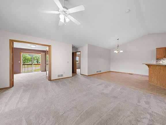 Step into this immaculate home featuring a soaring vaulted living space seamlessly connecting the inviting dining area and kitchen. The main level presents a well-appointed primary bedroom, recently renovated ¾ bathroom, conveniently located laundry room, and a versatile second bedroom or office with direct entry to the expansive deck. Descend to the walkout lower level retreat, where a spacious family room awaits alongside two additional bedrooms, a ¾ bath, ample storage beneath the staircase, and the mechanical room. Revel in the refined touches throughout, including fresh interior paint, plush new carpeting upstairs, a brand-new roof, updated kitchen appliances, and upgraded washer and dryer units. Enjoy the benefits of carefree living in this home!