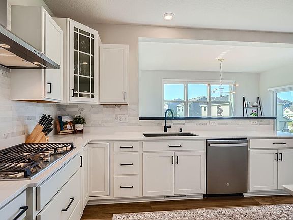 Do not miss the opportunity to call this stunning Inver Grove Heights home yours. Upon entry you cannot help but notice the sun drenched main floor. There is a spacious flex room that is perfect for a home office, play area or formal dining or living room. The living room boasts a gas fireplace with stone surround, which is flanked by built in cabinetry and shelving. The kitchen is a chef's dream. It is complete with an enormous oversized island, beautiful tiled backsplash, stainless steel appliances and hood that vents to the exterior of the home. The walk in pantry is the cherry on top! You will not find a better place to entertain. Upstairs there are four bedrooms on one floor, as well as a full bathroom and laundry room. The primary suite is generously sized and features a private ensuite and walk-in closet. The lower level is the perfect opportunity to build instant equity and complete to your liking. It walks out to a patio and flat yard. This home is complete with a three car garage, an irrigation system and solar panels as well. Conveniently located in the 196 school district and near all of the amenities you need - this one cannot be beat. Come visit today!