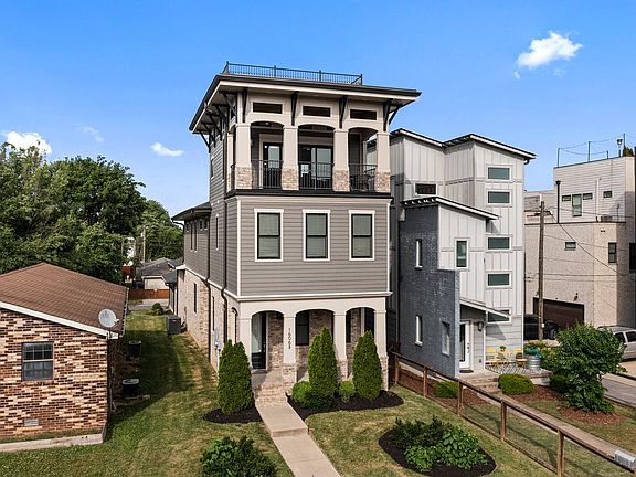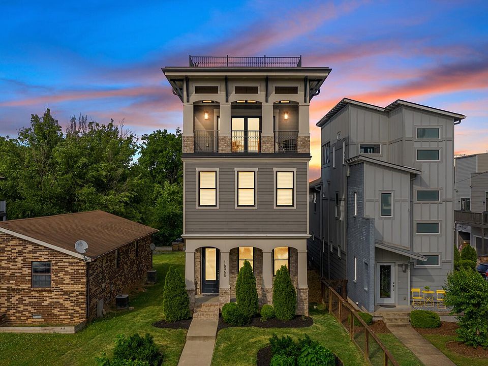 Step into an urban luxury home with downtown views! The main level includes a formal living room, featuring large archways and coffered ceilings, leading into the open kitchen and shared dining area with brick accents and wood beams. The open kitchen features brick backsplash and a breakfast bar for casual seating. Right off the kitchen is the second living room with a built-in wine rack, chic fireplace, and access to the enclosed patio. The second level includes the master suite, complete with a coffee bar and a massive private bathroom and closet with built-in shelves and shoe racks. The remaining three bedrooms each have large walk-in closets, with two of the bedrooms including private full bathrooms. The third level features a lounge room & patio access that leads to a private rooftop.
