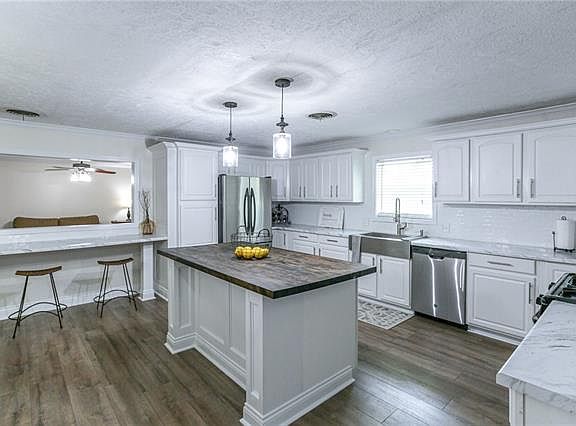 WONDERFUL recently remodeled four bedroom traditional home situated on a little under an acre of land! A few of the features include open floor plan, island in the kitchen, separate office or game room, huge covered back patio area with additional covered area for a boat, and an oversized double carport with attached workshop! Beautiful vinyl laminate flooring in most of the home, updated hall bathroom with tile surround and master bathroom featuring a HUGE master closet, double sinks and separate shower and jetted tub! This home has all that you have been looking for and is located inside city limits, but with a country atmosphere! Don't miss out, call today for your showing! Flood zone X, so typically flood insurance is not required. All measurements M/L