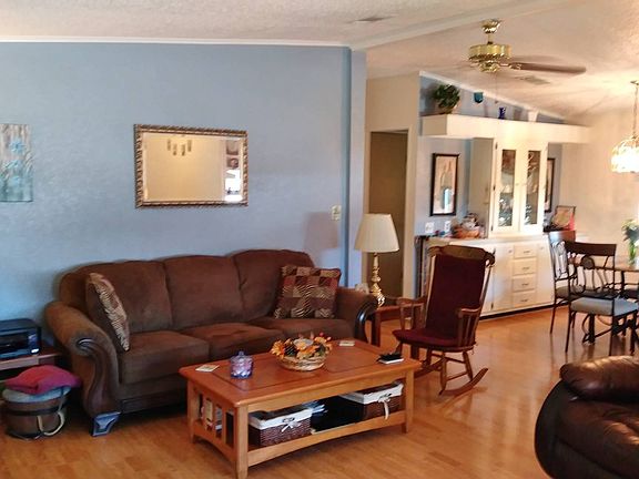 This 1987 Palm Harbor has been painted inside and out. Roof was replaced in 2018. Home is tape and textured wall finish for a more homey feel. Hardwood floors, with vinyl in both baths. Vaulted ceiling. It is being sold unfurnished with the kitchen appliances and washer & dryer being left. Great screen porch with a window A/C unit and vinyl windows. The shed has double doors. There is a sprinkler system, along with a private antenna for tv viewing. Golf cart is negotiable. This home would make a good rental investment for anyone who may not be here full time, should be easy to rent during "season". This home is located in beautiful Foxwood Village, located in North Lakeland close to I-4. This park is close to everything. Minutes from Lakeland Square Mall, Sam's Club, lots of restaurants, churches and medical care. You'll have lots of fun splashing in the pool or joining in the planned activities at the clubhouse. There is an indoor Jacuzzi, a sauna, shuffleboard courts and lots of other fun things to do. Great Adult Park! Address of home is 1606 Bassett, Lakeland, 33810. Lot rent is currently $630 which includes the annual "pass through" tax to all residents. Contact Ted Cope with Sun Resales