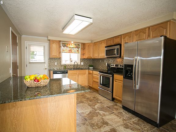 So much to love in this single level home in the Ferry Street Bridge area. Newer roof and gutters, ductless heat pump, very generous kitchen with granite counters, stainless appliances and tile floor, large living room with fireplace, vinyl windows,2 car garage, and fenced yard with two patios. Great first time home or investment property.