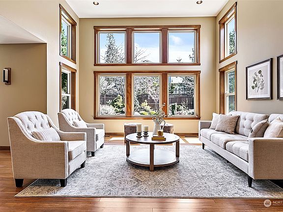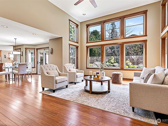 This wonderful home is nestled into a beautifully landscaped & spacious corner lot that offers great privacy & is steps from Whatcom Falls! Upon entering, take in the exquisite back yard & waterfall through 2 story high windows equipped w/ automated shades. Light floods the dining room which opens onto the patio making indoor/outdoor living & entertaining a joy. Cooks of all levels will swoon over the spacious updated kitchen with it's built-in Miele coffee bar, double ovens & beautiful pantry w/ loads of cabinetry & full size wine fridge. A first floor primary suite, office & large laundry make main level living easy. Hobbyists will love the 7 x 10 attached shop/studio, electrified shop (or office) + garden shed. Sprinklers + add parking!