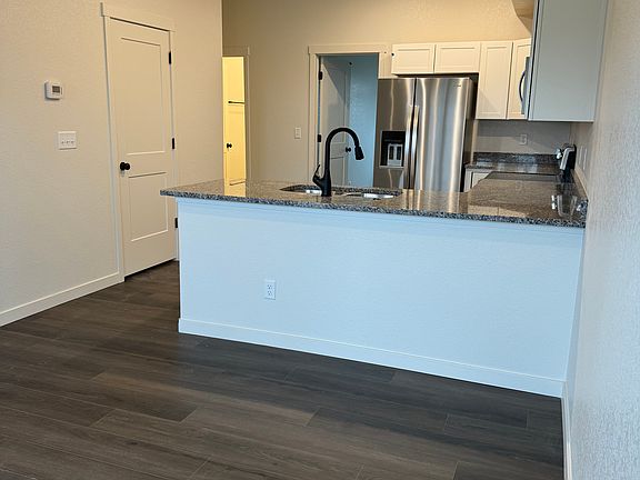 This fabulous 2024 built two-story home located in the Harmony Valley has a spacious main-floor bedroom. The kitchen features quartz countertops, a microwave, a dishwasher, a refrigerator, modern cabinetry, and a pantry. Upstairs, you will find two nice-sized bedrooms, a loft area serving as a beautiful office space or TV nook, a washer/dryer, and a full bath. The house has window coverings throughout and thermal windows.