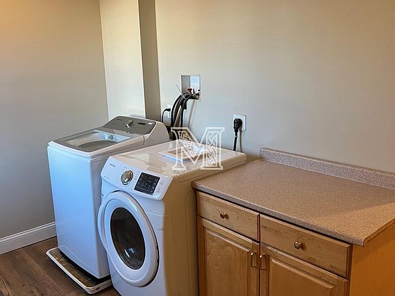Updated EAT-IN KITCHEN features STAINLESS STEEL APPLIANCES (including stove, refrigerator, GARBAGE DISPOSAL, DISHWASHER, OVER-THE-RANGE MICROWAVE) in addition to lots of cabinet space.