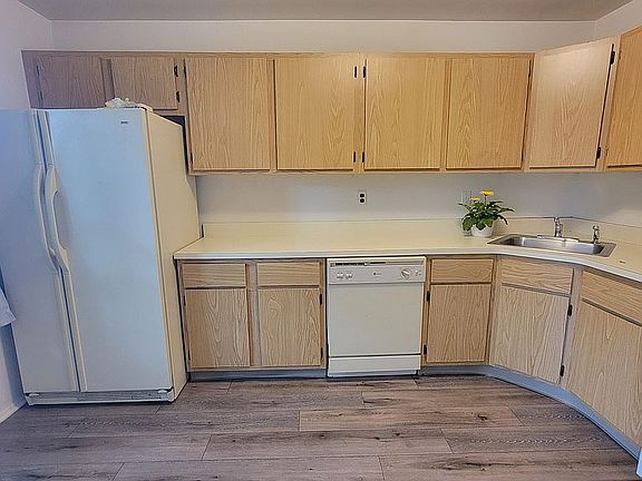 Second floor end unit for sale in the back of the complex, where it is nice and quiet. Master bedroom easily fits a king size bed and dresser w/ large Walk-in closet Balcony from LR/DR combo with sliding glass doors and new blinds Kitchen with small eat-in area and plenty of counter space. Range, 2 years old with grilling option Stainless steel sink Front coat closet and linen closet Utility room with energy efficient furnace and hot water heater Gas forced hot air and central air conditioning Stackable washer and dryer , like new. Only two years old. Recently painted and wall to wall carpeting installed Bathroom has been totally remodeled New sink, toilet, tub, flooring, tile and plumbing Newer laminate plank flooring in kitchen and bathroom Refrigerator and dishwasher Community storage shed for bicycles Utilities: gas, electric, quarterly water and sewer payment. Brand new thermostat