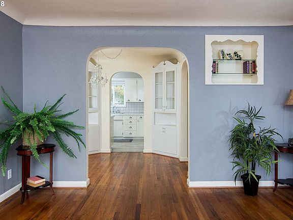 Charming Vintage Bungalow with arched doorways, cove ceilings, built ins and hardwood floors. Kitchen has plenty of cabinets, counter top space & stainless appliances. Also features family room, kitchen dinette, covered patio, private fenced back yard with gated RV parking, storage shed, sprinklers. Less than 3 yrs old are gas water heater, heat pump with air & gas back up furnace, and insulation. Close to McKenzie Willamette Hospital.