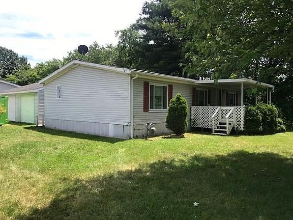 Manufactured Ranch on large corner lot. 3 Bedrooms, 2 full baths including master bath. Living Room with vaulted ceiling, large front covered porch. Two car detached garage. Rear patio, Storage sheds.