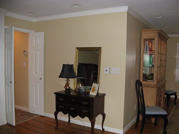 Many improvements have been made to this home with screen porch being added, new kitchen flooring, counter tops, gas cooktop, convection/regular oven combo and both bathrooms being totally renovated with the first having been painted, tiled, new counter top and sink added along with new cabinets and 2nd bath having new pedestal sink and large walk-in tiled shower added. Wall removed between living and dining room with ceiling lights added in living, dining and kitchen areas. Also, there is a very large chain-link dog pen in the back side yard.