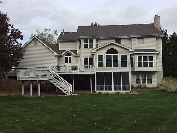 Absolutely stunning 2 story home situated on a private 1/2 acre lot. Enter to find a formal dining rm w/ cased openings, crown molding & chair rail, & a study w/ cased openings & French doors to the great rm. The great rm features custom built-in bookcases, fireplace & computer desk, & opens to a cozy sunrm w/vaulted ceiling & a surround of windows to allow for lots of natural light. The heart of the home is the kitchen & breakfast rm area w/hardwood floors, granite countertops, island w/breakfast bar, bay window, planning desk & opens to the deck. A gorgeous master suite on the UL, w/ double doors, vaulted ceiling, his & her walk-in closets & luxury bath w/double vanities, jacuzzi tub & walk-in shower. 3 addtl bedrms & 2 full bathrms on the UL. The finished walk-out LL boasts a rec rm, office/exercise rm, 5th bedrm, full bath & lots of storage. Addtl features include 2 tier deck, screened-in porch, ML laundry, surround sound on ML & LL, & spacious 4-car finished garage!