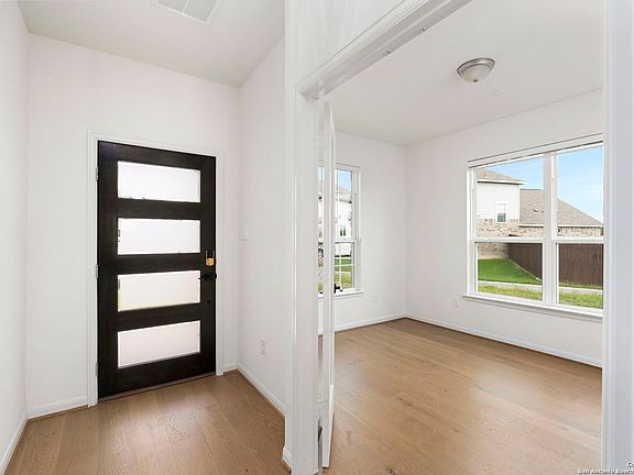 Elegance and Beauty is what you find when you walk inside this home on a huge culdesac lot. Welcome home to your beautiful 4bd home in Arcadia Ridge that shows like a model. Home sits in a cul-de-sac with one of the best premium large lots in the community that backs to a partial greenbelt. Contemporary front iron door welcomes you inside and you immediately take in the gorgeous hardwood floors, a study with double doors to the left perfect for a home office! Get excited about cooking and entertaining in this bright white kitchen with upgraded cabinets, counters and honeycomb backsplash, upgraded light fixtures in the hallway, kitchen and living room add so much character to the home and offer a true classy touch to the home. Dining area off the kitchen with a black framed window and custom light fixture, pantry glass door. Living room offers high ceilings with a black tiled fireplace from floor to ceiling. Built in shelves under the staircase offers great space for books and decor. Appreciate the black iron railing that accents the staircase, game room and wall to upstairs rooms. Primary is downstairs with windows along backside for natural light. Primary bathroom has a tiled shower and garden tub with a double vanity and walk in closet. Upstairs you will find 3 spacious bedrooms with a full bathroom. A game room for secondary living, library or study for the second floor, PLUS a private media room with wall sconce lighting! This home is ready for great use and summer fun! Enjoy your huge covered patio with afternoon shade so you can actually sit and enjoy and BBQ outside. This lot has 2 nice size side yards in addition to the back yard that backs to a greenbelt area. Don't wait to see this home. It's priced UNDER appraised value.