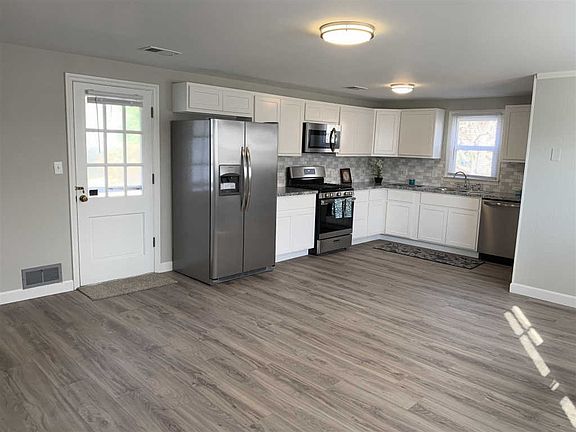 Completely remodeled 3 bedroom 2 bath home on Evansville's East side. You must see this perfect shade of red for the front door! Improvements include NEW roof, replacement windows, 2 NEW gas 40 gallon water heaters, NEW white kitchen cabinets, NEW kitchen counter tops, NEW appliances, 2 HVAC systems (1 NEW AC & 1 NEW gas furnace), Refinished hardwood floors, NEW carpet, NEW vinyl plank floor, Updated bathrooms, NEW lighting, NEW paint, & much more. Home includes separate laundry room with extra cabinets. So much to see in this home. You will be surprised with how much room & storage space is available in this home. Electric from NEW AC to be connected at breaker box prior to closing.