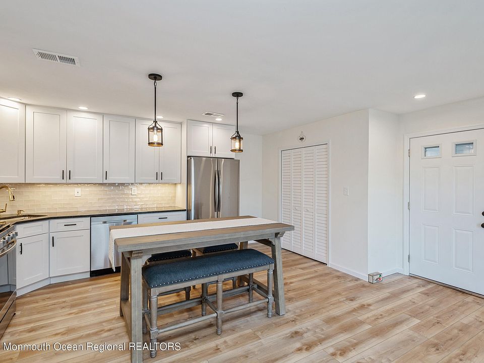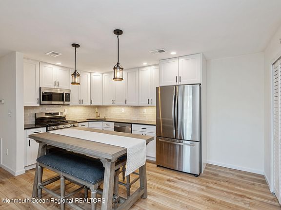 This renovated large one bedroom unit is very nicely appointed with granite countertops in kitchen , and bath vanity with brand new cabinets. The condo has all new stainless steel appliances, and kitchen sink. This one bedroom condo has a beautiful high grade double wide vinyl plank flooring, recessed lights , pendant lights, and undermount counter lights. The unit has newer force hot air (gas) , central air conditioning, hook ups for washer / dryer. Brand new window, and sliding door treatments, high end full closet organizing systems in walk-in bedroom closet , and off kitchen closet. This unit has customized floor plan different from other units in complex. The condo has assigned parking spot #13 close to unit. Location 1st. floor next front parking lot, and close to Town Center.
