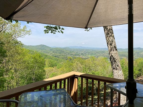 Million Dollar View in upscale gated community of Brasstown Heights. Located near John C Campbell Folk School, and nearby downtown Murphy, hospital, college and restaurants. When you walk onto this property, you immediately feel a sense of peace. Well maintained 2bd/3ba chalet with bonus rooms and laundry in basement (laundry hookup on main lvl as well). Unique beautiful stone fireplace competes with the mountain views for attention in the spacous greatroom, central heat and air, wood floors on the main level, and large pantry. Full master suite upstairs with walkin closet. Wraparound deck and walking path among the trees to enjoy the serenity of the mountains. Only used part time by current owners. Furnishings negotiable.
