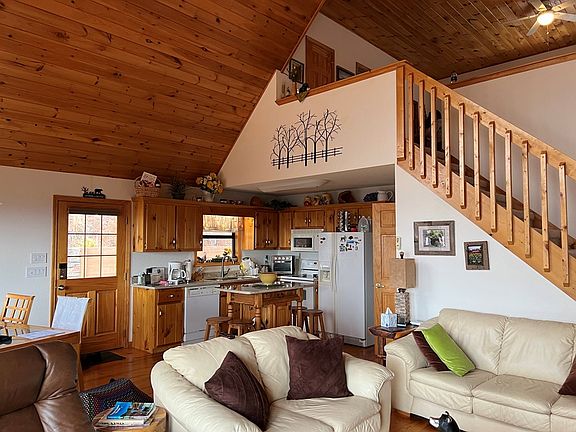 - Interior Features: Window Treatments, Drywall, Washer/Dryer Connection, Laundry on Main, Cathedral Ceiling(s), Wood Ceiling(s), Vaulted Ceiling(s), Granite Counters, Other, Kitchen Island