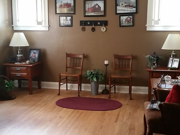Attractive two-bedroom brick bungalow with many nice updates. Hardwood floors in several rooms. Large family room with a wood burning fireplace. Complete tear off roof in 2010 good for 35 years. New furnace in 2010 as well. All new Pella windows in the front of the house and basement, privacy fence and security system. Enjoy the patio and nice porch in the front. All appliances will stay and the fridge was new as of 2016. (Square footage and room dimensions are approximate)