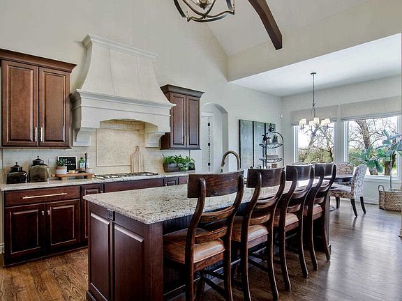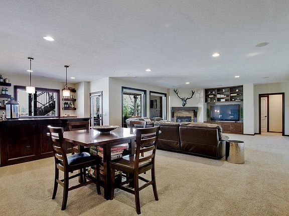 Stunning ranch situated on a beautifully landscaped corner lot that backs to the trees and has the perfect floor plan for entertaining! This move-in ready ranch features high ceilings, hardwood floors, built-ins, large windows to let the natural light in, built-in speakers, gorgeous granite kitchen with 2 Bosch dishwashers, two-entry walk-in pantry, under cabinet lighting, massive master suite with its own private bathroom with granite, tile shower with dual shower heads, his and her vanities, soaker tub, and walk-in closet with access to the laundry room. Entertain with ease in the finished basement family room with built-in entertainment center and fireplace, large game area with granite wet bar and door to the patio. Sit back and relax out on the patio or covered deck and look out to the fenced backyard with inground pool!