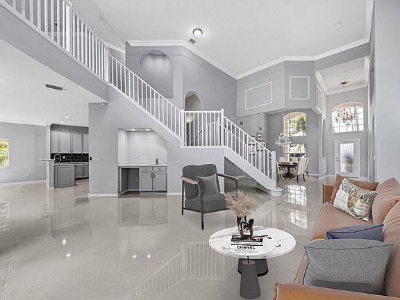 Live the Florida dream in this stunning 5 bedroom, 4 bath, updated home. Dream kitchen with a center island, stainless steel appliances, quartz counter-tops, tiled granite back-splash, snack bar and a menu desk. Master retreat with a coffered ceiling, door to patio, his and her walk-in closets, dual sinks, soaking tub and walk in shower. The inviting covered patio overlooks the large, private yard. This home also boasts a formal living room, formal dining room, family room, loft, neutral flooring, crown molding, a wet bar and a neutral decor. Stonehaven provides first class amenities that incudes a clubhouse, fitness center, gathering room, resort style pool, spa, tennis, and a play area. Located close to shopping, dining, entertainment, ''A'' rated schools, major highways and airport. Stonehaven provides first class amenities that includes a clubhouse, gathering room, fitness center, resort style pool, spa, tennis and a play area. Located close to shopping, dining, entertainment, "A" rated schools, major highways and airports.