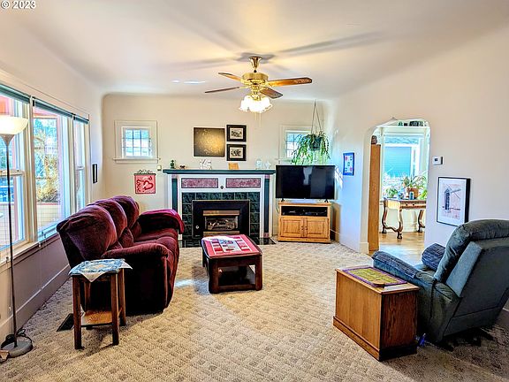 Classic bungalow in south La Grande now for sale! This home features a beautiful Eastern-facing covered front porch with views, arched doorways in the spacious living room, a dining room full of light, a new concrete driveway for off street parking, a nice detached garage and a fenced backyard. Lots of room for expansion of finished living space in the basement. Charming features such as Dutch doors and a laundry chute. Close to schools, downtown and the hospital. Call today!