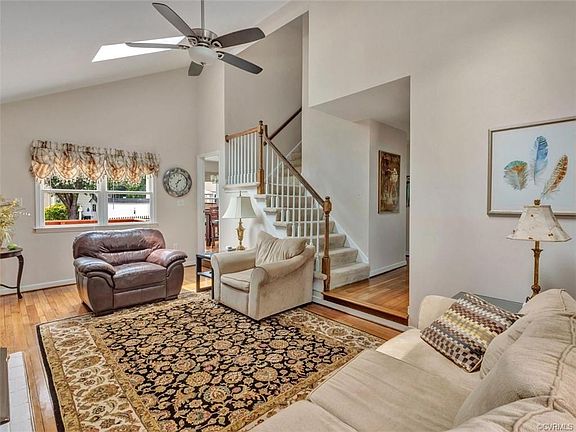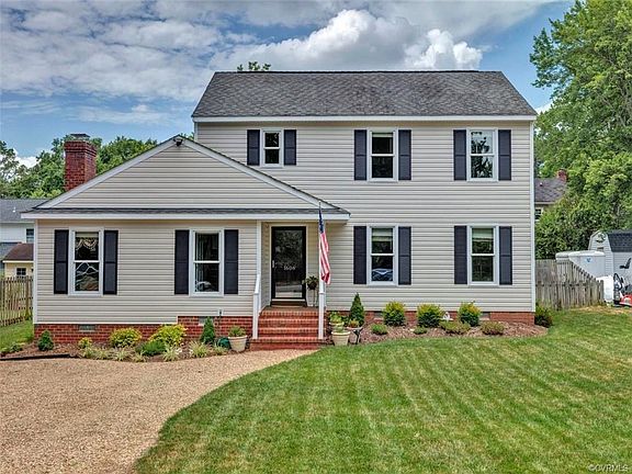 Charming colonial nestled on easy to maintain well-landscaped lot. Dimensional shingled roof, vinyl siding, and replacement windows keep the exterior simple. You'll stay cool in the summer and warm in the winter with the 4 year old HVAC system. Upon entry you'll find real hardwood floors in the foyer, large cathedral ceiling family room and roomy kitchen while carpet completes the formal living room/office, dining room, and upstairs bedrooms. The complete interior has been recently painted and all the bathrooms feature beautiful custom ceramic tile work. This home is convenient to Short Pump and 288 for easy access all over Henrico and ready to move quickly this weekend. Better make your plans and hurry in!