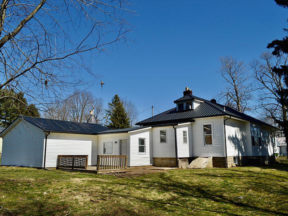 1 1/2-story home situated on a 1 acre lot just on the out-skirts of town. This home features 2-3 bedrooms & 1 full bath. White cabinet filled kitchen, large formal dining room, cozy living room that is highlighted by a brick fireplace w/wood-stove insert. 2 main level bedrooms, HUGE 2nd level bedroom/office/playroom. Wood floors throughout most of home, main level laundry, 2 car garage w/concrete floor & electric, some modern windows, forced air-natural-gas furnace, central a/c, relaxing covered front porch as well as a nice sized deck in back of home, Large storage shed. New metal roof & gutters (2023). Home is being sold in AS-IS Condition. Cash or Conventional Financing Only
