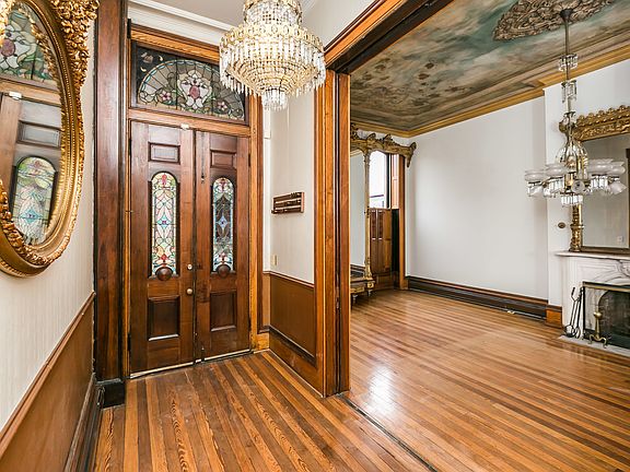 1870 Masterpiece on a premier blk facing the park/fountain w/coveted 2 Car Garage! Exquisite details-6 Fpl (as-is), Pier Mirrors, Chandeliers, 13Ft Painted Ceiling, Alternating Walnut/Pine Floors & more! Updates inc New Roof (12'), 2 Zone CAC (06'), Orig Gingerbread Porches(13'), Family Rm and 2 Gourmet Kitchen for your entertaining needs. Flexible Flrplan w/4-6 Beds. Facing House of Cards Mansion