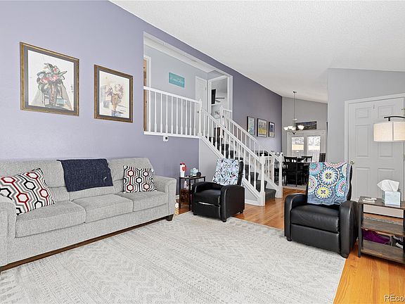 Situated on a spacious corner lot, this split-level home is filled with charm! A welcoming covered front porch sets the tone, leading into a vaulted living room with beautiful hardwood flooring and plenty of natural light. The kitchen and dining area feature granite countertops, stainless steel appliances, and a central island, creating a great space for cooking and gathering. The dining area overlooks the lower-level family room, where a cozy fireplace adds warmth and character. Upstairs, two bedrooms and two full bathrooms include a spacious primary suite with an ensuite. The lower level provides additional flexibility with a third bedroom, another bathroom, and a laundry area. Step outside to the expansive backyard, complete with newer fencing (2023) and a storage shed for extra storage. Recent upgrades include a new roof and gutters (2023), radon mitigation system (2023), solar panels (2024), and an upgraded electrical box (2024). With modern updates, generous living spaces, and a prime location near Buckley AFB, parks, and shopping, this home is a fantastic find.