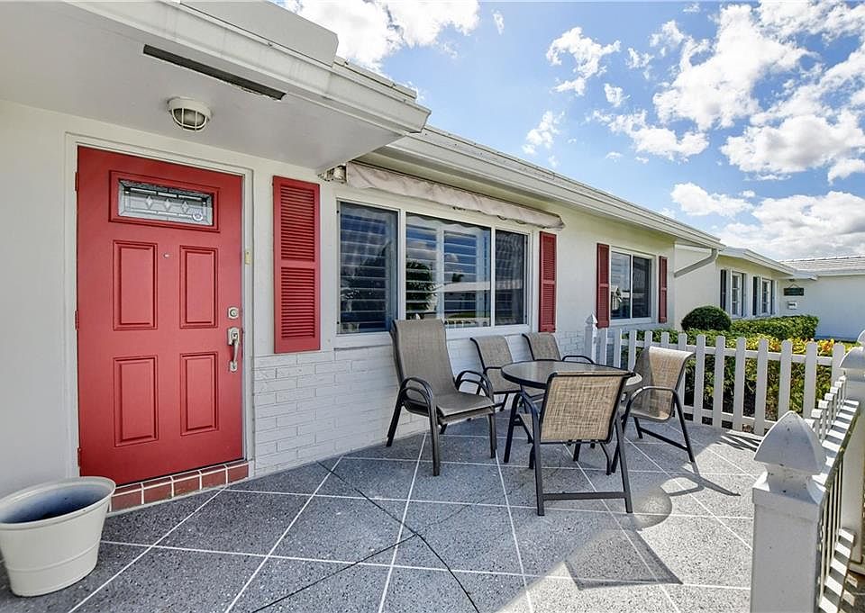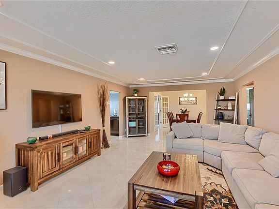 Striking home on the water in sought-after Leisureville. Largest model in a quiet, well maintained 55+ community is move in ready. Warmly greeted by porcelain tile floors, fresh paint, bright open floor plan connecting the living room, dining room, kitchen and French doors leading to an inviting additional family room/den/office space. This 2 bedroom 2 bath home plus unique space offers adaptable rooms. Meticulous attention to detail presented in the kitchen with granite countertops, newly installed appliances, center island, inviting the perfect balance for casual and formal entertaining. Living area is spacious and accented by beautiful Plantation Shutters, crown molding, textured ceilings to add to the rich feel of the rooms. New impact doors and windows are an added plus.