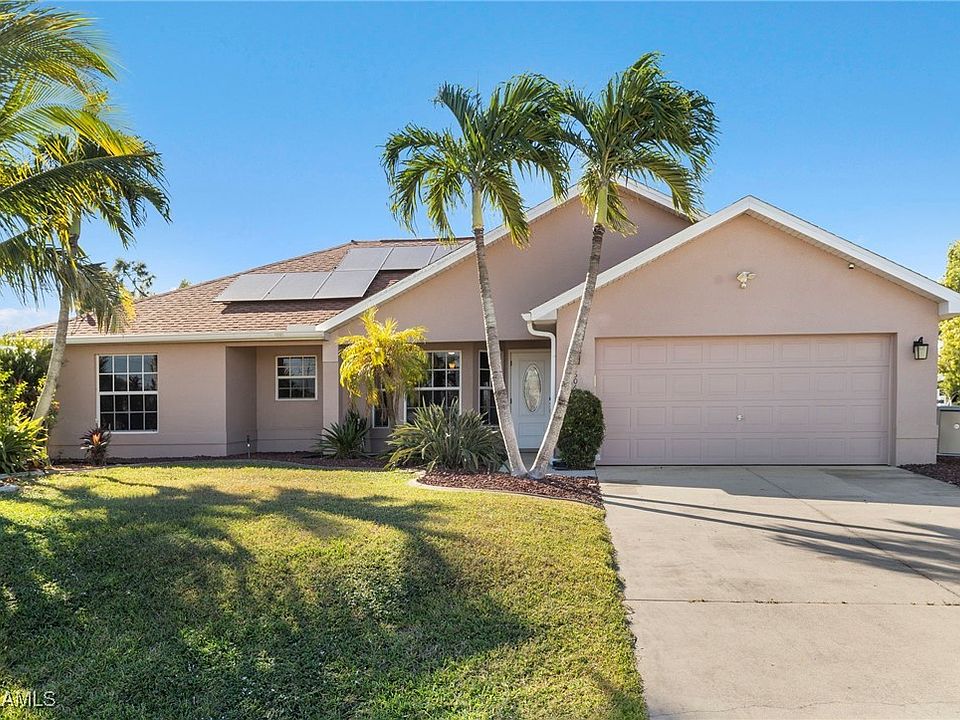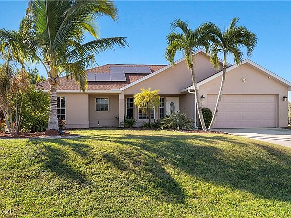 *SELLER ACCEPTING BACKUP OFFERS* This 3 bedroom, 2 bathroom southern exposure pool home is located in one of the most sought after areas in Cape Coral!! This home boasts an open floor plan and vaulted ceilings. The kitchen opens up to the living room and dining room. Owner's suite offers a walk in closet and dual vanities. Tile in living area and carpet in the bedrooms. Brand new pool cage, A/C, pool pump and fence. The outdoor oasis includes plenty of covered space under truss. Perfect for entertaining and cathing the most beautiful SWFL sunsets! Fruit trees and mature areca palms offer a private, island vibe! Brand new solar system to be paid off at closing and LCEC buyers back power every month!!! Say goodbye to $300+++ electric bills each month! Also, not in a flood zone so flood insurance is not required! The combination of not having an electric bill and no flood insurance will save SO much money!! Everything can be run off the solar system, and especially nice when running the pool heater every day. Only one block away from Cape Christian! Located off Chiquita between Pine Island Rd and Veterans which offers tons of new development off of Pine Island, shopping, dining and much more!! Seller's open to lease to own options!!